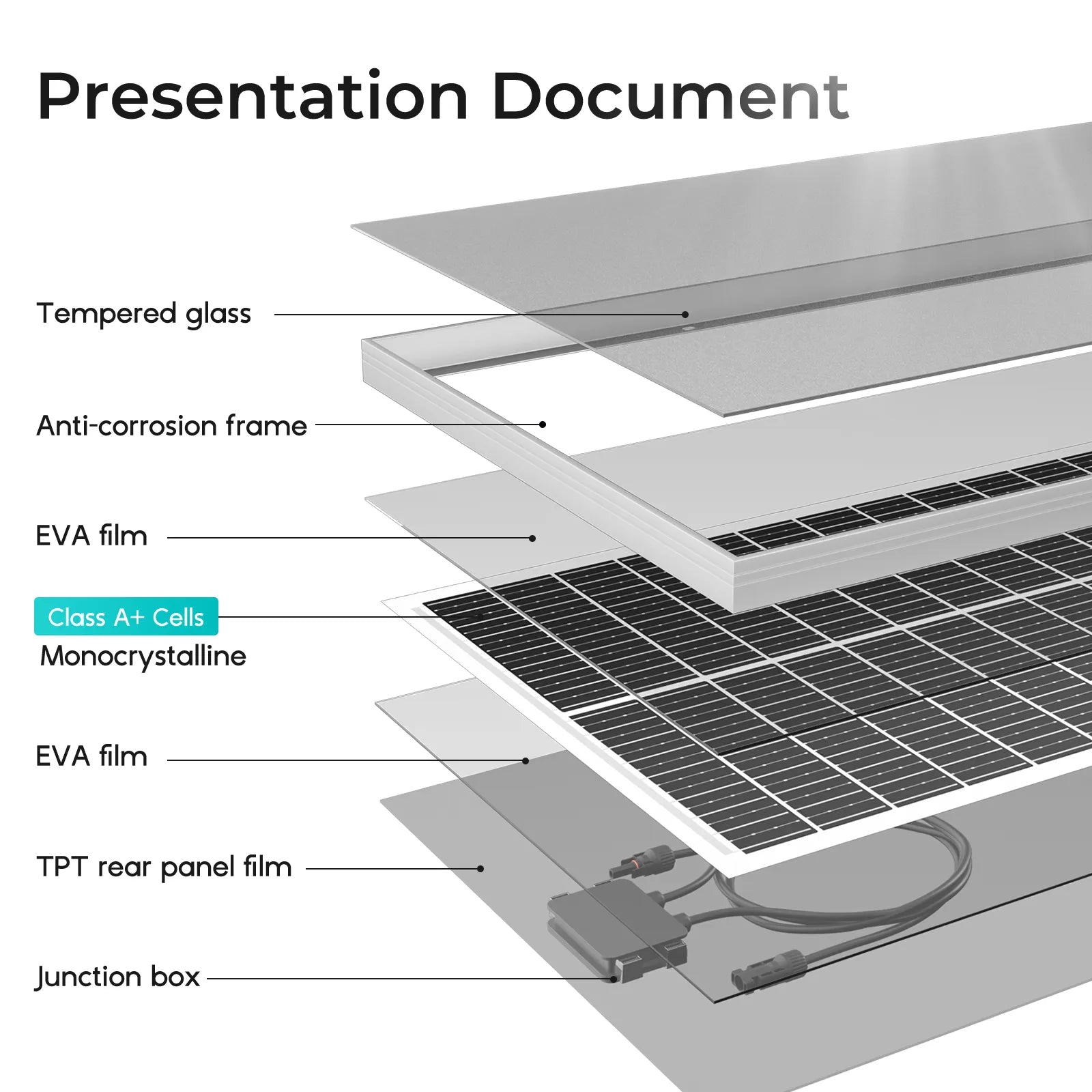 Each solar panel is built with premium components and precision manufacturing to ensure excellent solar conversion efficiency and a longer lifespan.